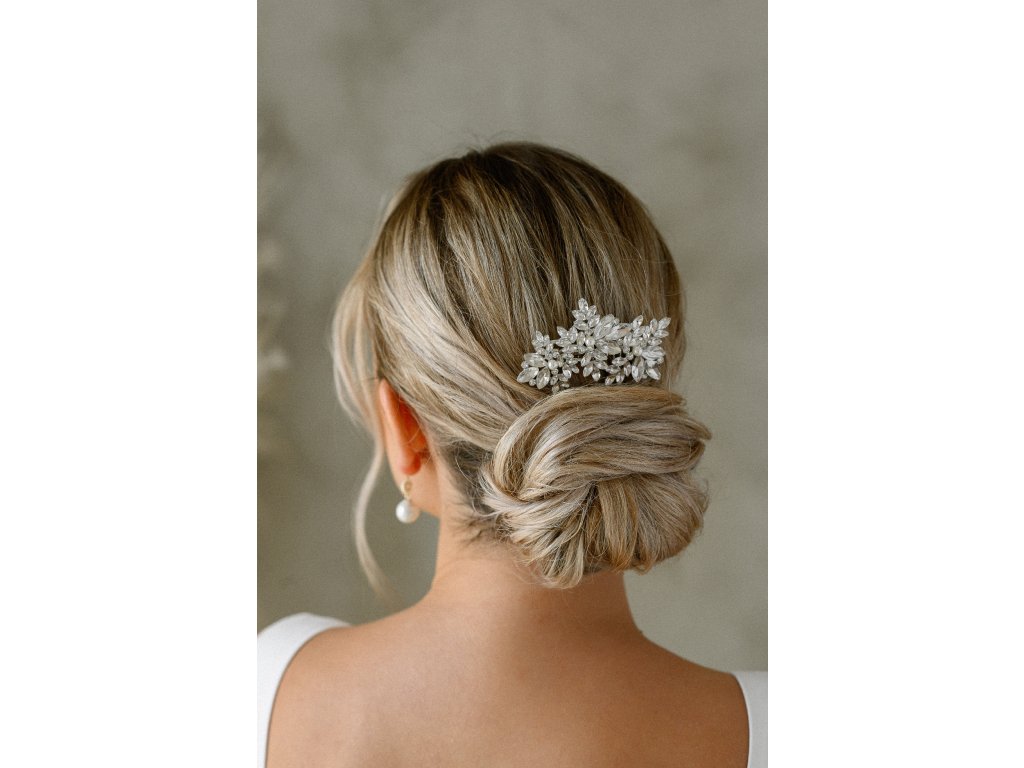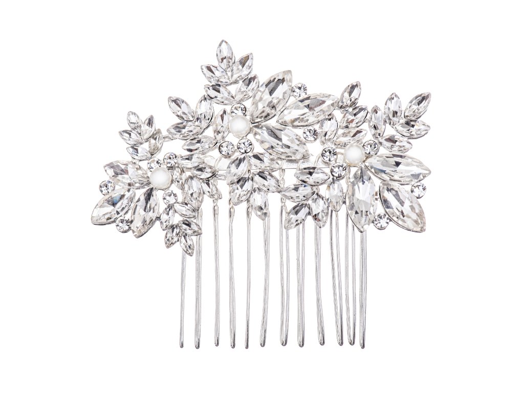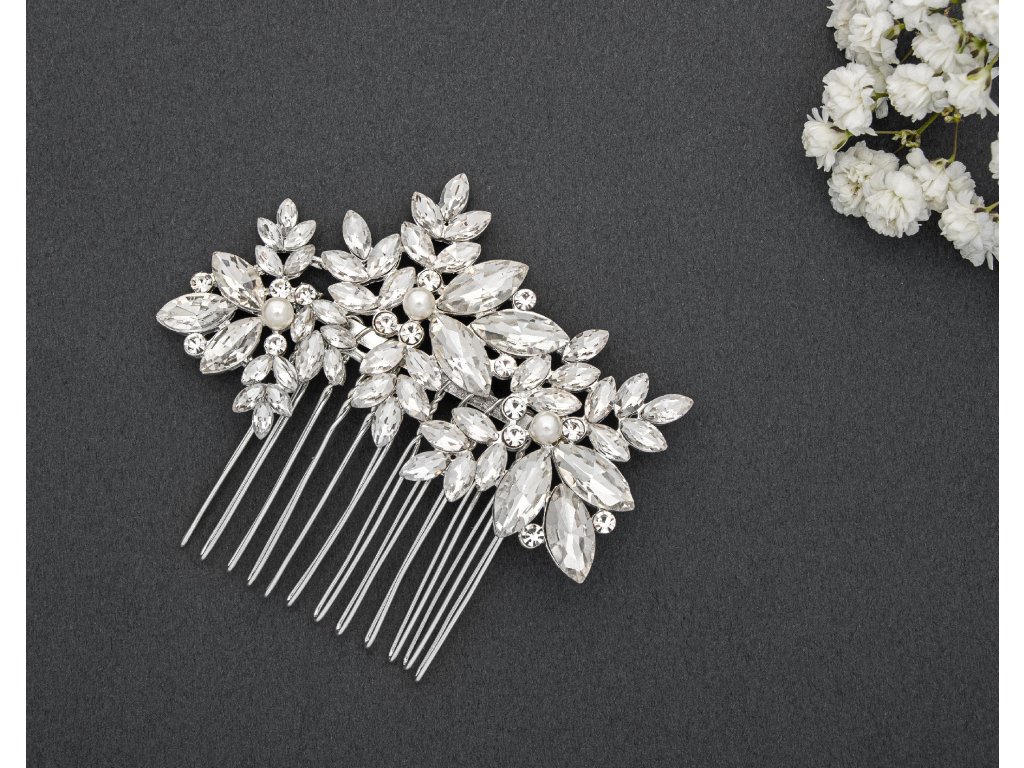 Ohromující hřeben do vlasů pro nevěsty s ručně vyrobenou kompilací vzácných krystalů.