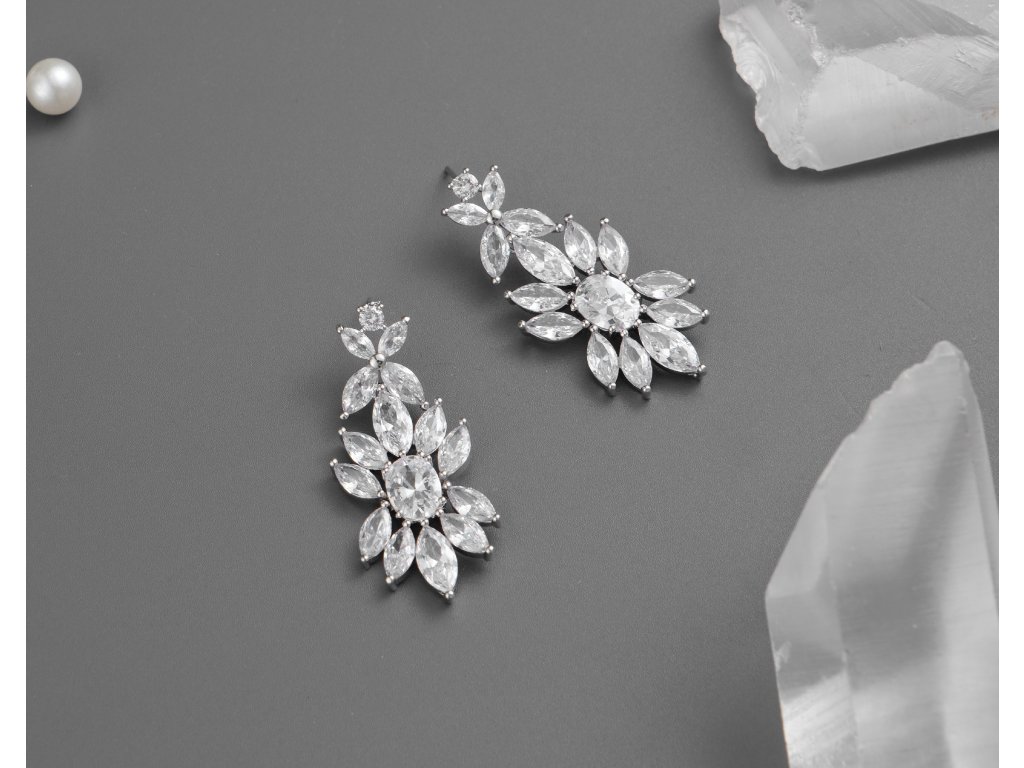 Elegantní svatební náušnice zdobené krystaly zirkonu.