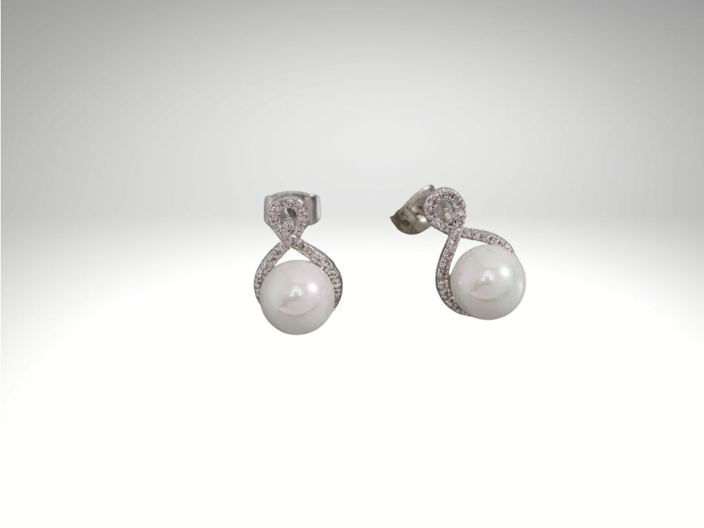 Luxusní rhodiované náušnice, složené z úžasného aranžmá třpytivých kamenů kubických zirkonů a ručně leštěných perel, oslní ve zvláštní den.