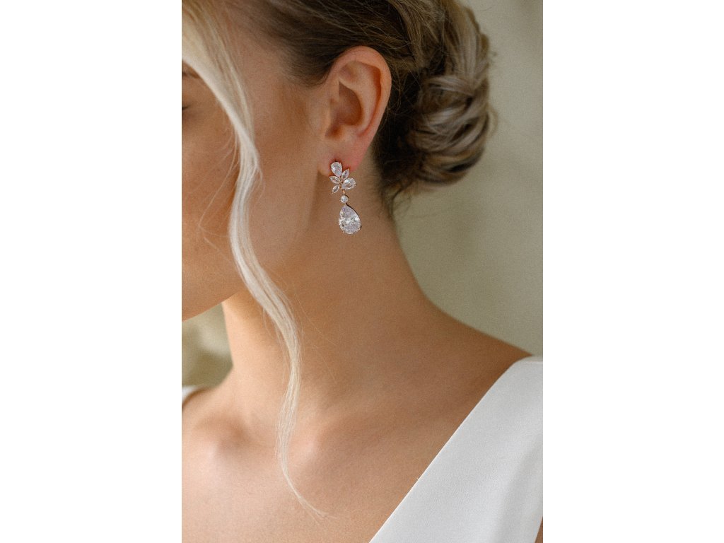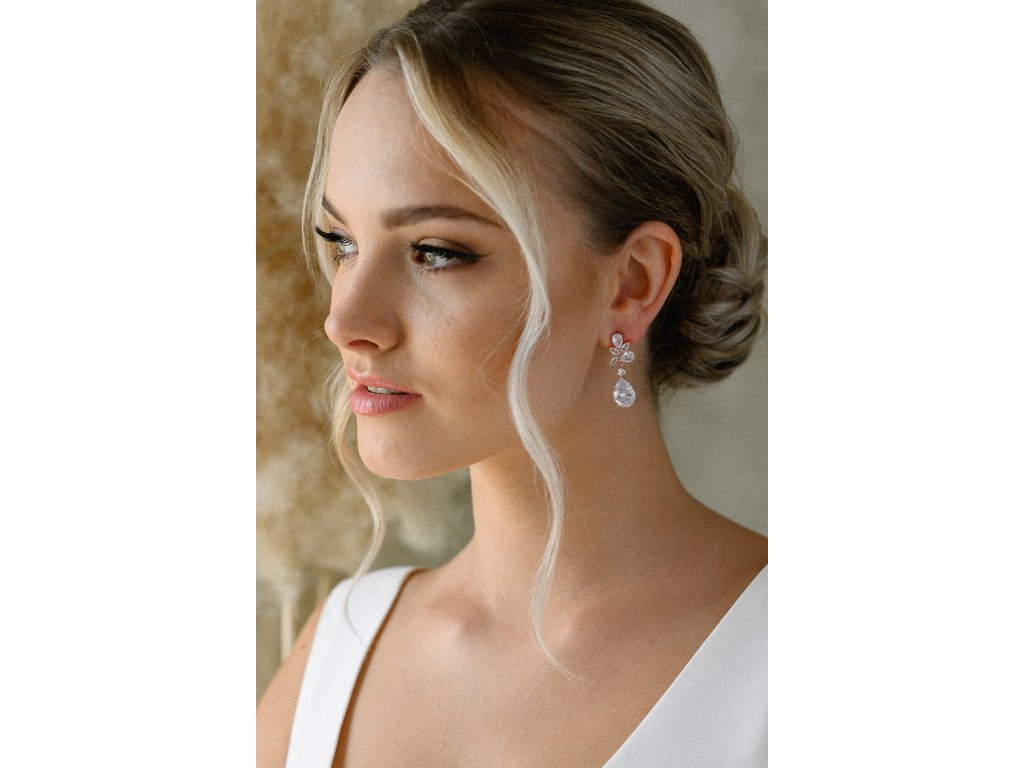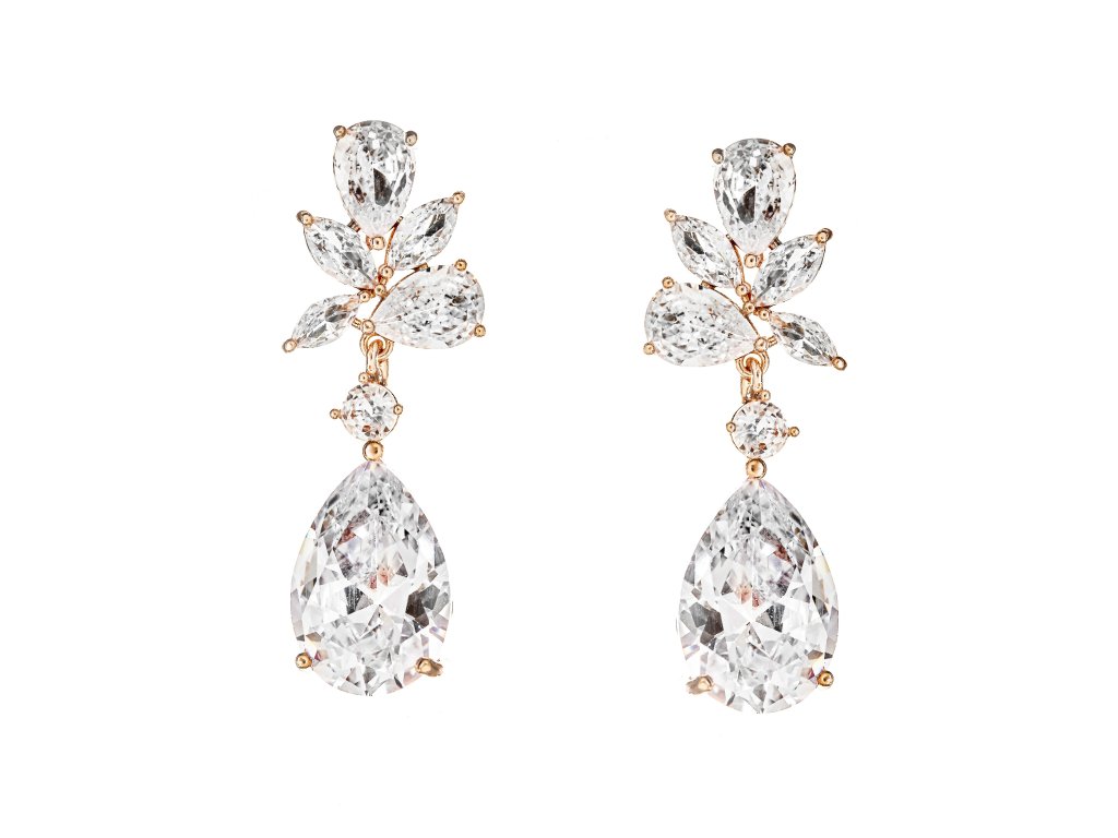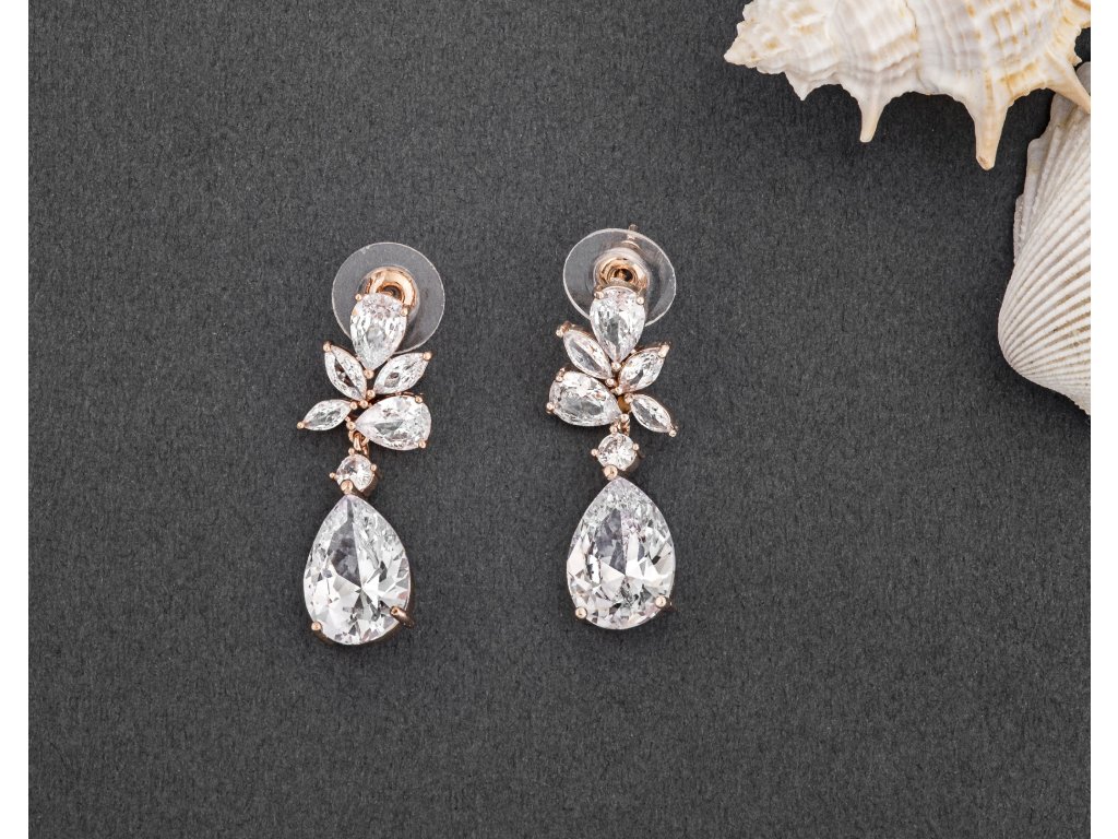 Elegantní svatební náušnice z růžového zlata zdobené krystaly zirkonu.